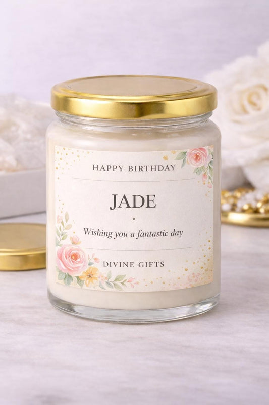 Personalised Birthday Candle Gift – Custom Name Birthday Candle, Floral Candle Gift, Luxury Birthday Gift for Her, Handmade UK