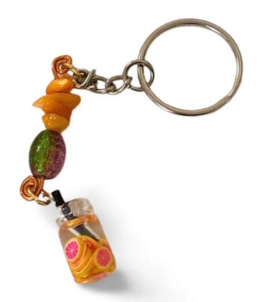 Orange Calcite Crystals Multi Charm Crystal and Copper Keyring, Hand Bag Charm, Gift For her, Birthday, Cute Gift.