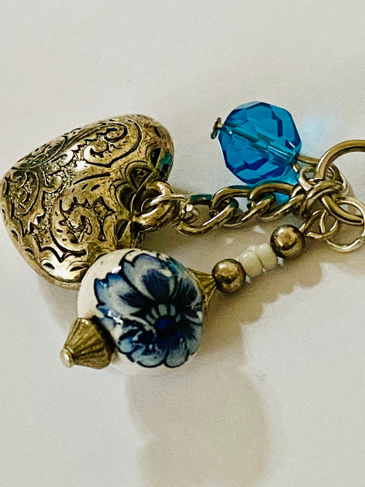 Heart Bead Multi Charm Keyring, Hand Bag Charm with Ceramic Beads, Gift For her, Birthday, Cute Gift.