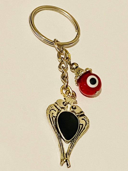 Love Birds with Red Evil Eye Beaded Multi Charm Keyring, Hand Bag Charm, Gift For her, Birthday, Cute Gift.