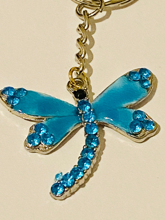 Pretty Blue Dragonfly with Gems Charm Keyring, Hand Bag Charm Gift For her, Birthday, Cute Gift.