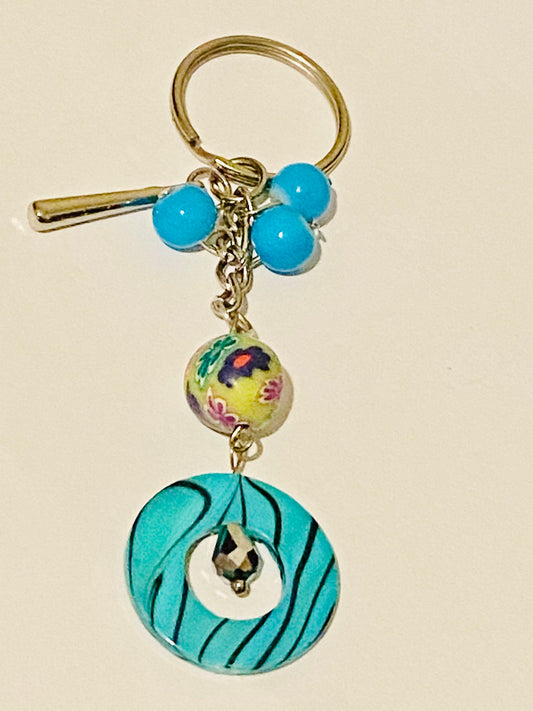 Turquoise Circle Blue Beaded Multi Charm Keyring, Hand Bag Charm, Gift For her, Birthday, Cute Gift.