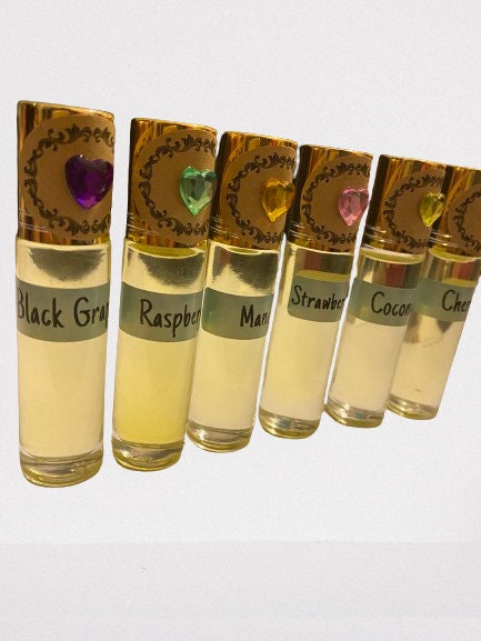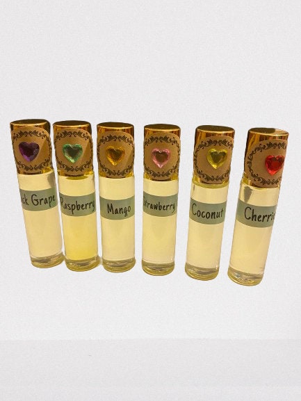Pick a scent- fruity roll-on 10ml oils! Infused with the enticing fragrances of raspberry, black grape, mango, coconut, cherries, and strawberry cream, each oil promises a deliciously indulgent experience.