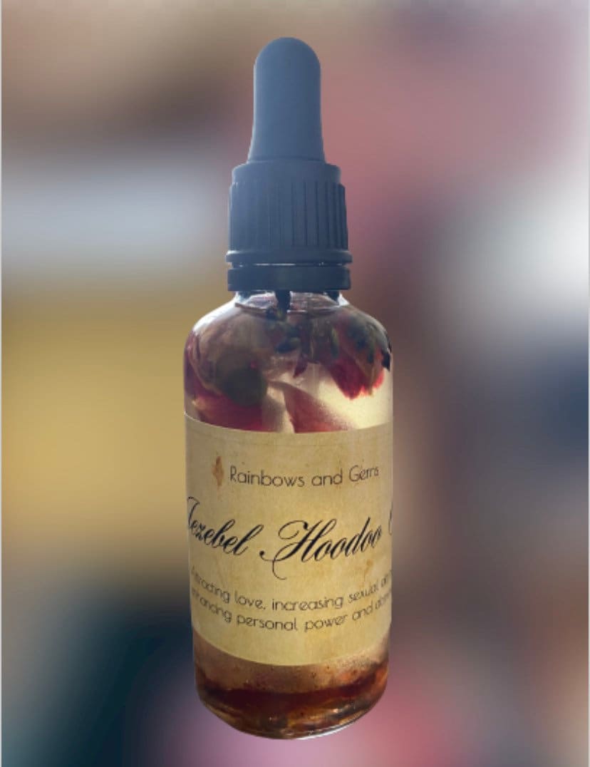 Jezebel Oil, a luxurious blend crafted to inspire empowerment and self-assurance. Infused with warm floral and earthy notes, this oil was created to help you reconnect with your inner strength, self-value, and radiant energy.