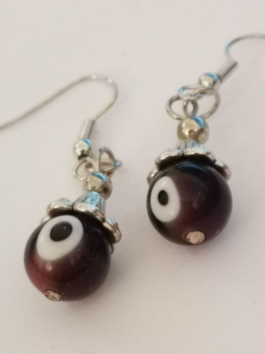 Brown Evil Eye Spiritual Protection Ball Beaded Earrings, for Women, Girls, Men.