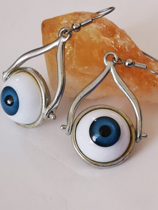 Blue Evil Eye Spiritual Protection Large Movable Earrings, for Women, Girls, Men.