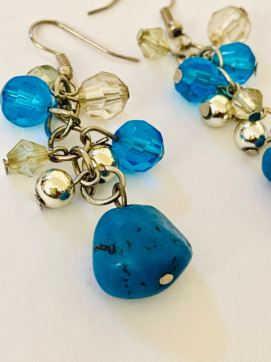 Woman, Girls Turquoise Beaded Fashion, Boho Dangle Earrings. Hook Drop, Pierced Ears.
