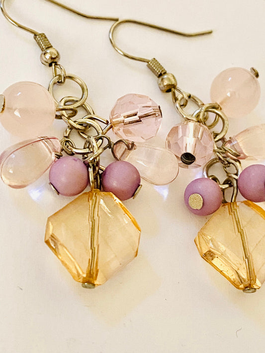 Woman, Girls Pink & Lilac Beaded Fashion, Boho Dangle Earrings. Hook Drop, Pierced Ears.