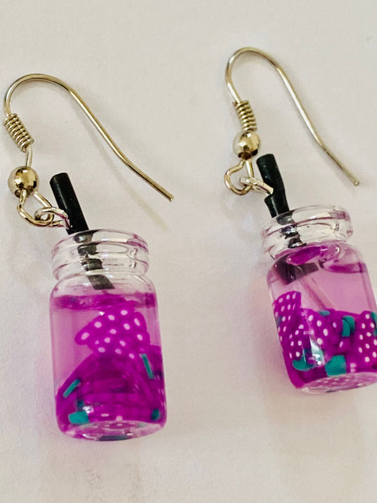 Woman, Girls Purple Colour Mason Glass Charm Beaded Fashion, Boho Dangle Earrings. Hook Drop, Pierced Ears.