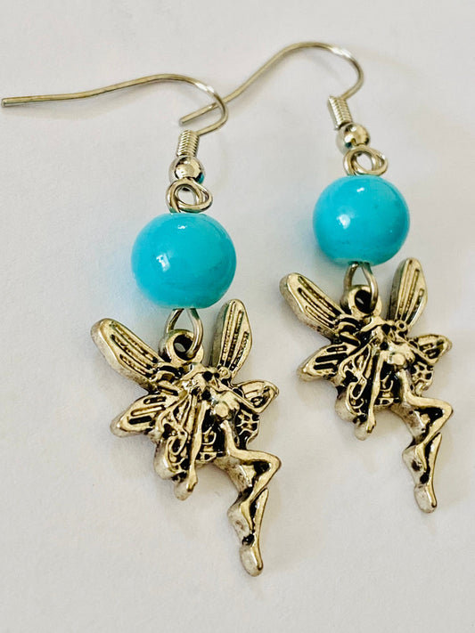 Woman, Girls Blue Bead Fairy Charm Fashion, Boho Dangle Earrings. Hook Drop, Pierced Ears. Gift for her.
