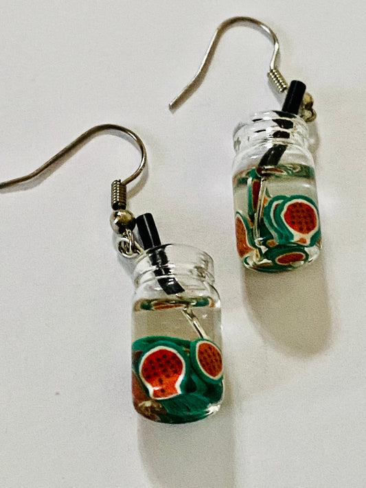 Woman, Girls Melon Mason Glass Charm Beaded Fashion, Boho Dangle Earrings. Hook Drop, Pierced Ears.