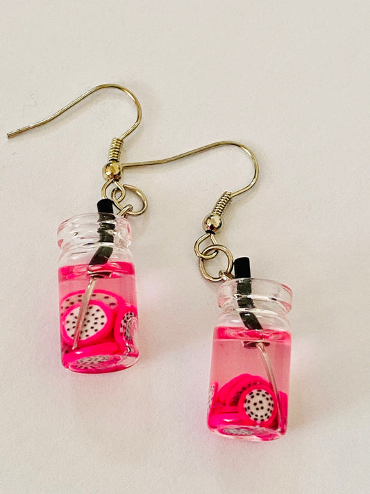 Woman, Girls Pink Colour Mason Glass Charm Beaded Fashion, Boho Dangle Earrings. Hook Drop, Pierced Ears.