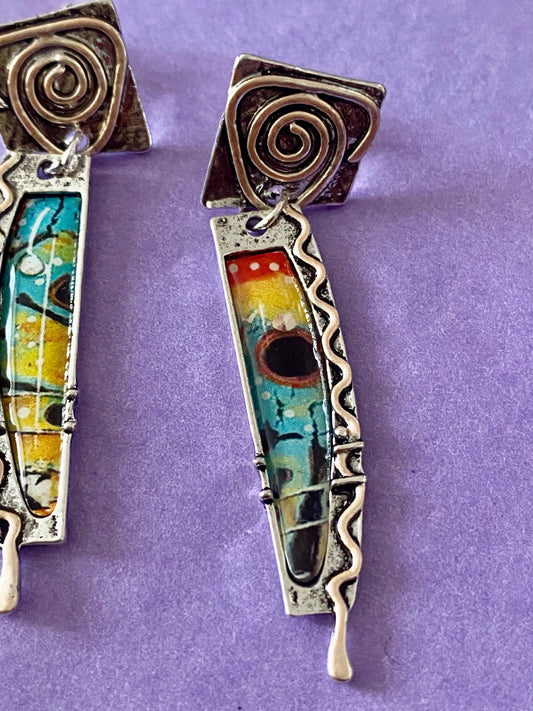 Beautiful Boho colourful earrings. For women, girls tribal design. Gift, Style 2