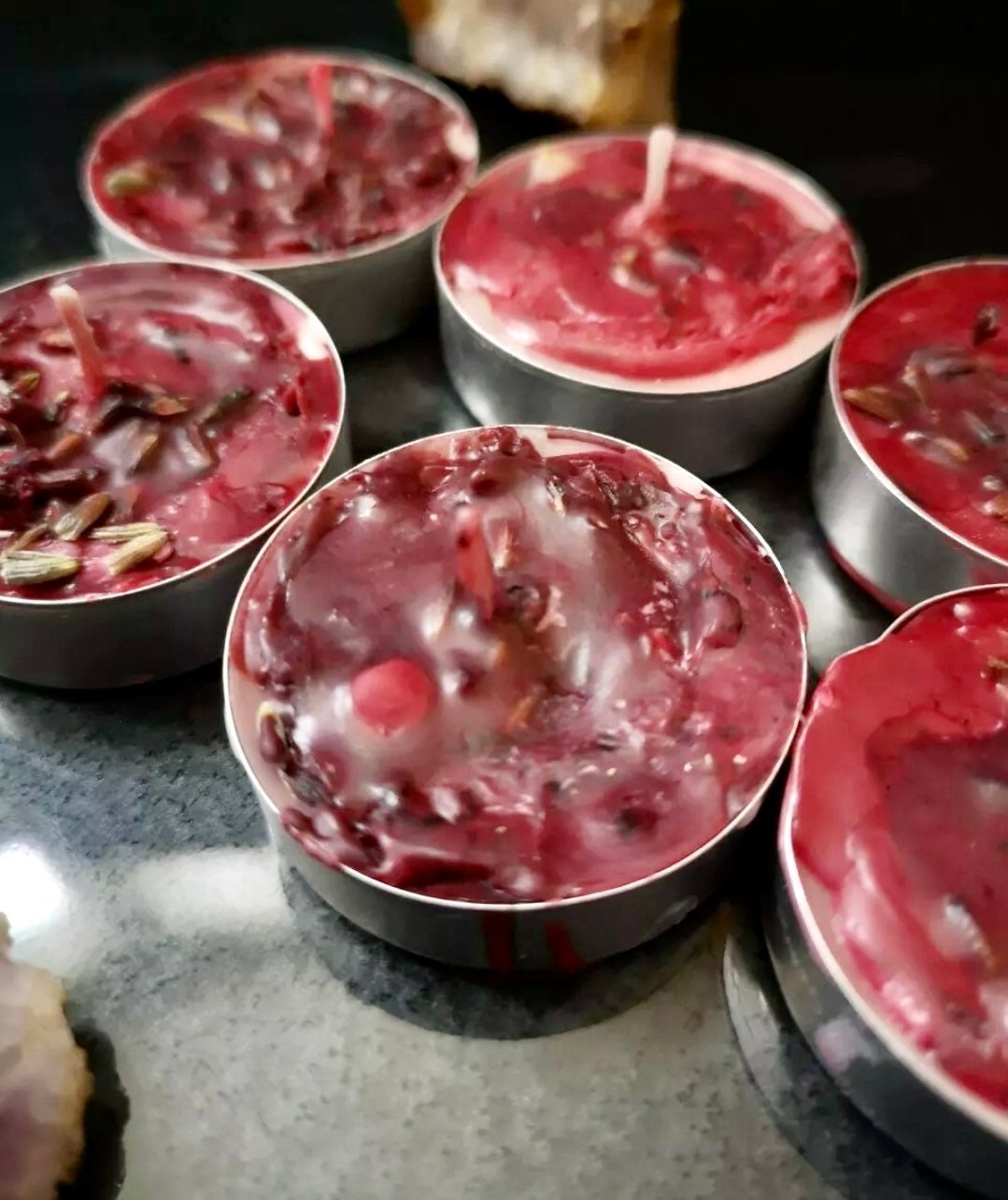 6 Hoodoo Love TeaLight Candles, made with herbs, roots, oils & powders. Handmade Blend - Use to attract Love. ❤️