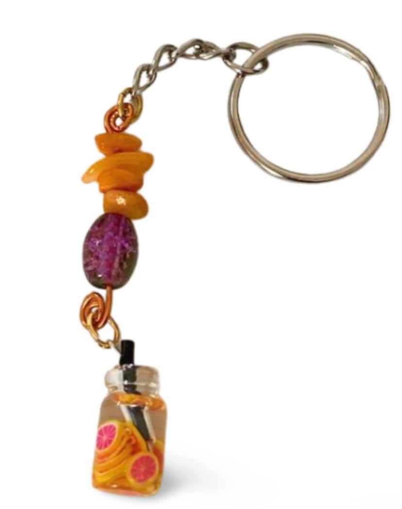 Orange Calcite Crystals Multi Charm Keyring,Gift For her, Charm, Birthday, Cute Gift.