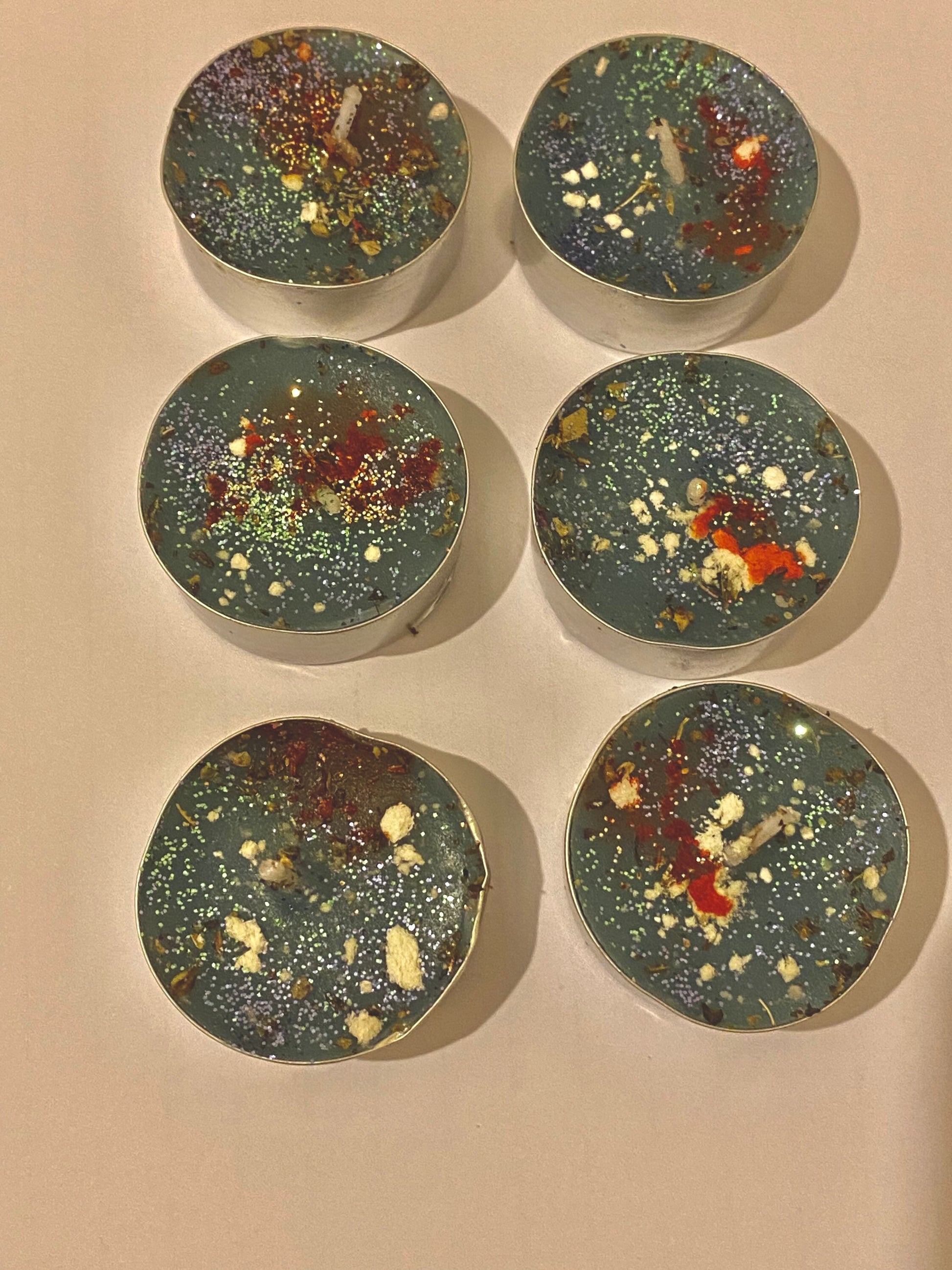 Home Protection Tea Light Candles: Handmade Herb & Oil Blend (Set of 6)