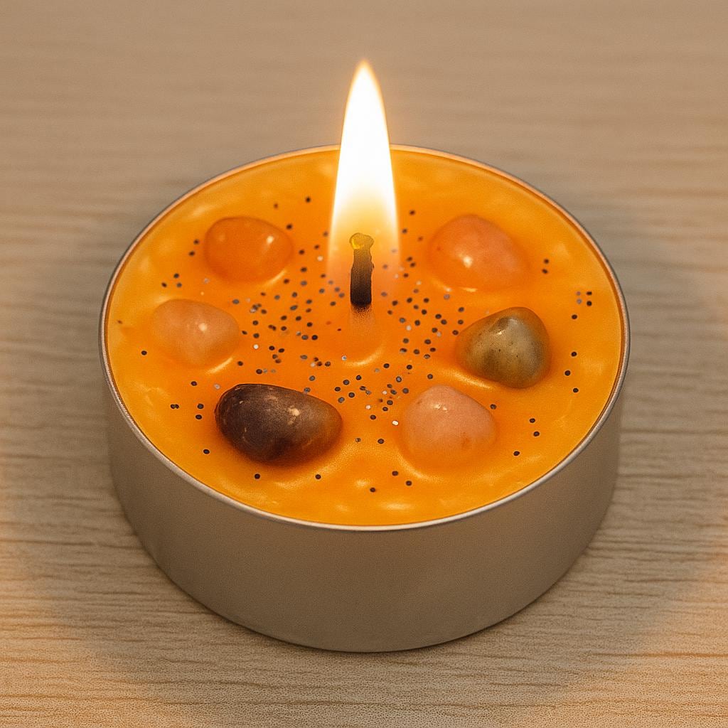 Crystal Infused Tealight Candle | Orange Wax with Gemstones | Spiritual Candle | Divine Gifts