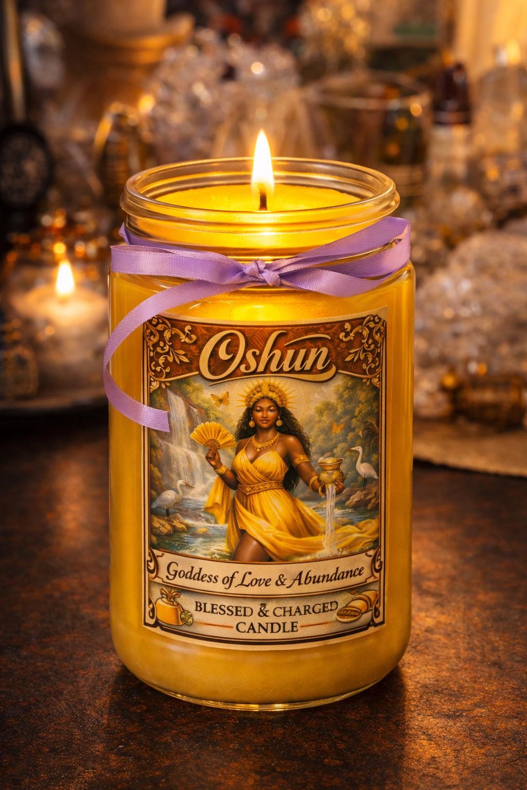 This luxury spiritual candle is hand-poured, blessed, and energetically charged with intention to attract love, joy, confidence, prosperity, and emotional healing. Inspired by Oshun’s golden river energy, this candle carries a warm, sensual, honey-sweet aroma that soothes the heart and uplifts the spirit.